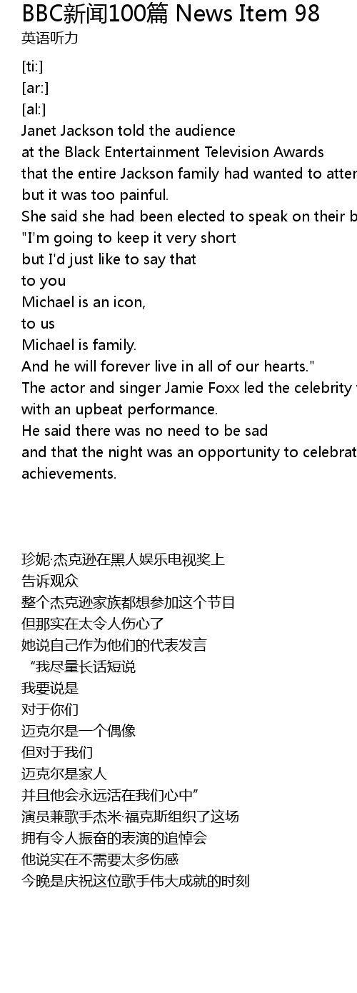 | [00:29.81] | The actor and singer Jamie Foxx led the celebrity tributes, |