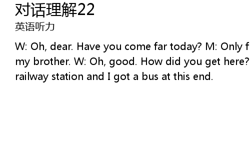 W: Oh, dear. Have you come far today? M: Only from Britain. I was staying with my brother. W: Oh, good. How did you get here? M: My brother took me to the railway station and I got a bus at this end.