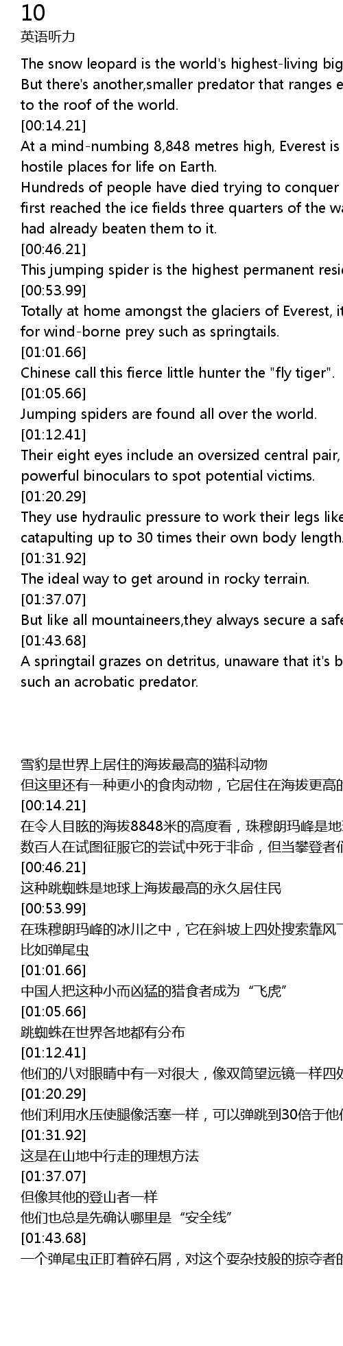 [00:50.04] This jumping spider is the highest permanent resident on the planet.