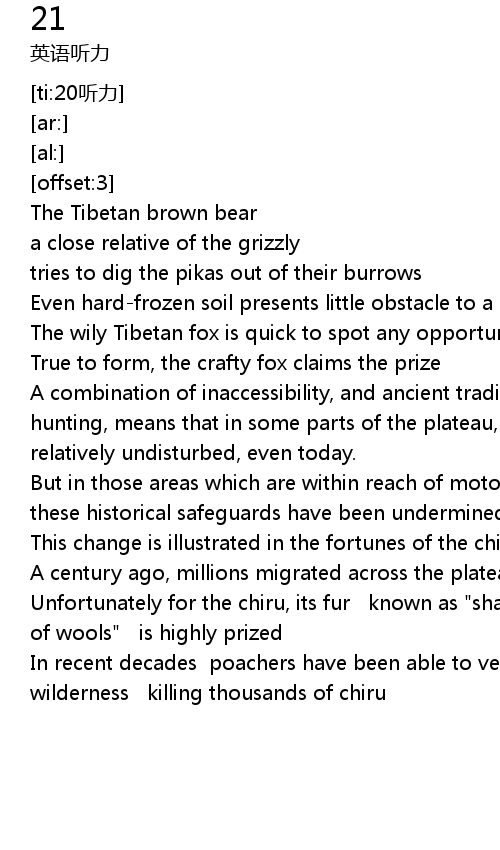 | [01:33.87] | This change is illustrated in the fortunes of the chiru |