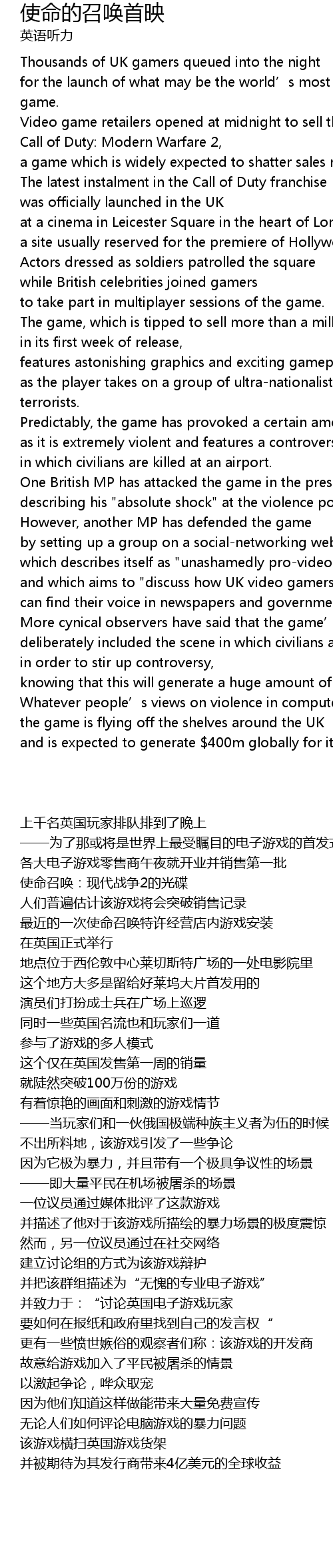 | [00:20.35] | The latest instalment in the Call of Duty franchise |