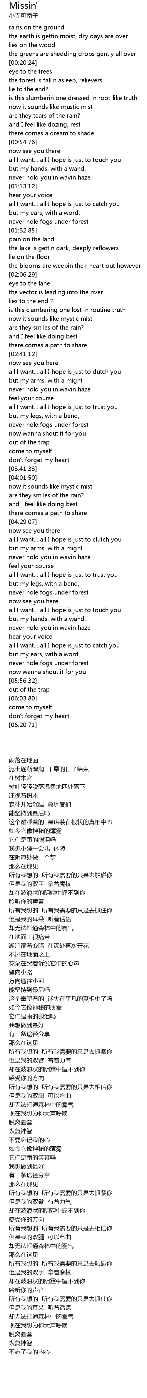 | [05:37.52] | never hole fogs under forest |