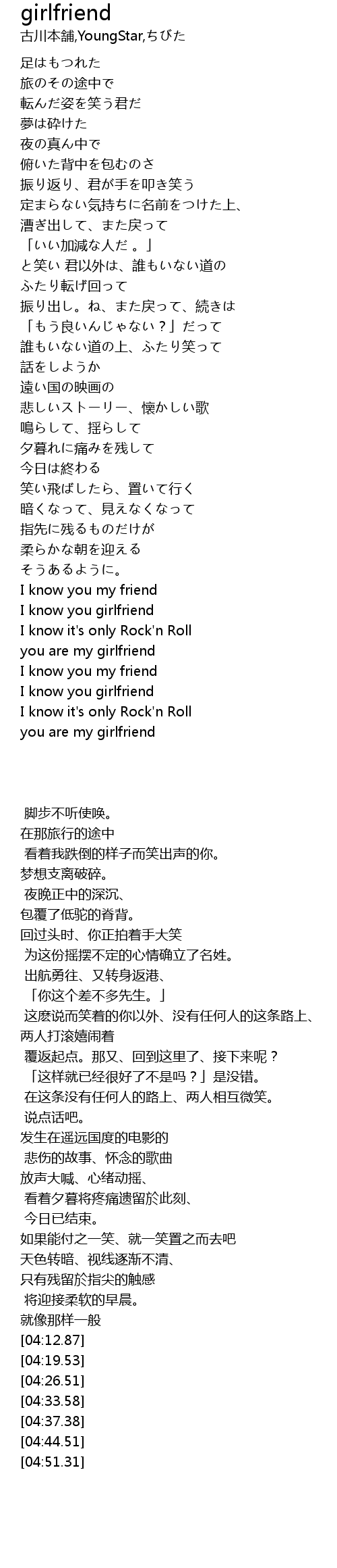 | [04:33.58] | you are my girlfriend |