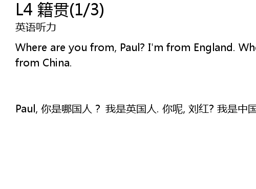 | Where are you from, Paul? I' m from England. Where are you from Liu Hong? I' m from China. | |