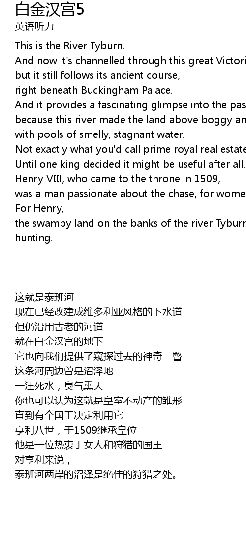 | [00:51.080] | the swampy land on the banks of the river Tyburn was perfect for hunting. |