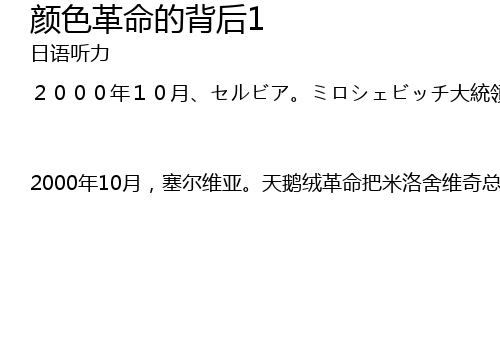 | 2000年10月,塞尔维亚。天鹅绒革命把米洛舍维奇总统赶下了台。2003年11月,格鲁吉亚。玫瑰革命令谢瓦尔德纳泽总统黯然退场。2004年12月,乌克兰。新政府在橙色革命中诞生。2005年4月。吉尔吉斯的郁金香革命。非暴力革命使就苏联残余势力的四个独裁政权应声垮台。起因都是由于选举舞弊引起大规模抗议示威,政府因此而被推翻。 |