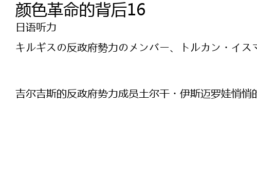 | 吉尔吉斯的反政府势力成员土尔干・伊斯迈罗娃悄悄的在散布这本据说由斯通印刷厂印的书。书名是从独裁到民主。作者是吉恩・夏普。我把它翻译成吉尔吉斯语。这是我们的圣经。这书告诉我们不适用暴力推翻独裁政权的方法。塞尔维亚,格鲁吉亚和乌克兰的革命,都是在这本书的指导下成功的。独裁政权的弱点,革命准备工作的方法,以及如何继承政权的方式。我们印了6000本,现在只剩下100本。大学生在校园里散布这本书。 |