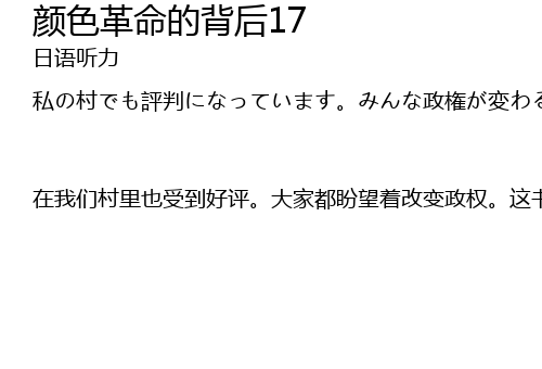 | 在我们村里也受到好评。大家都盼望着改变政权。这书在全国范围内传播,在南部读的人相当多。那里已经出现了革命的火花。斯通正在印刷厂编辑次日报纸的头版。这次又是辛辣的政治讯息。已经下台的谢瓦尔德纳泽和库奇马。阿卡耶夫是下一个。吉尔吉斯的阿卡耶夫总统,15年前以高达超过95%的得票率坐上了权力宝座。 |