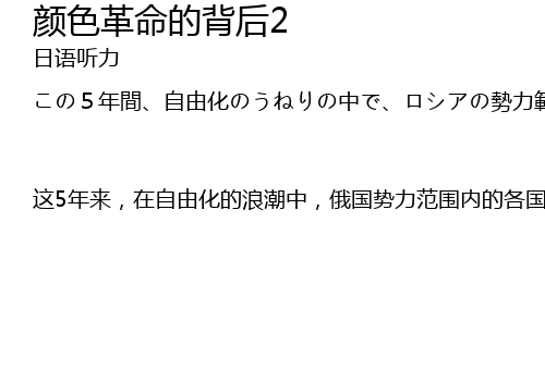 | zhè 5 nián lái, zài zì yóu huà de làng cháo zhōng, é guó shì lì fàn wéi nèi de gè guó xǐ xīn gé miàn, kāi shǐ xiàng měi guó kào lǒng. é guó de pǔ jīn zǒng tǒng duì cǐ yōu xīn chōng chōng. mín zhǔ huà yùn dòng shì rú hé fā shēng de, rú guǒ xià yī chǎng gé mìng fā shēng de huà, yòu jiāng huì shì zài nǎ lǐ. sū luò fá kè, sài ěr wéi yà, gé lǔ jí yà, wū kè lán, jí ěr jí sī, yǐ jí mò sī kē hé huá shèng dùn, wǒ men cǎi fǎng de zú jī biàn jí quán guó. qián dōng fāng jí tuán guó jiā wú fǎ è zhì de mín zhǔ huà làng cháo, ràng wǒ men lái tàn xún wǔ tái bèi hòu de nèi mù. |