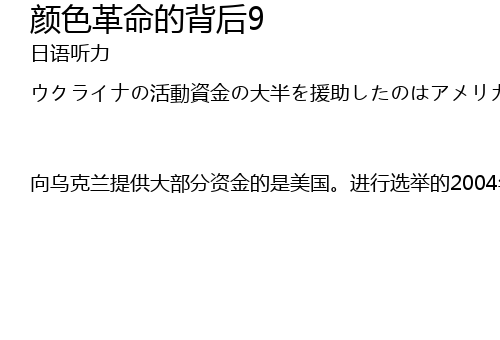 | ウクライナの活動資金の大半を援助したのはアメリカです。選挙が行われた2004年にはおよそ6000万ドルを注ぎ込みました。さらに、キルギスでは、民主化運動の支援に5000万ドル注いでいます。エディルの所属する団体も選挙監視資金として11万ドルを受け取っています。会報の第一面はブッシュ大統領の記事です。大統領の指名受託演説の様子です。私たちもブッシュには複雑な気持ちを抱いているんです。特にお気に入りというわけではないのですが、ブッシュはこう言ってるんです。「アメリカは圧制の元で暮らすすべての人を決して忘れていない。アメリカは独裁者を決して許しはしない。あなた方が自由を求めて立ち上がる時、アメリカも共に立ち上がる。」 | |