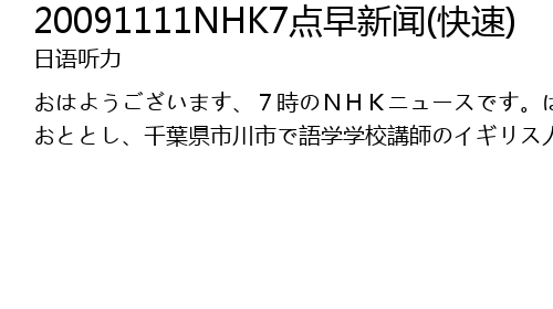 | Song | 20091111NHK7点早新闻(快速) |