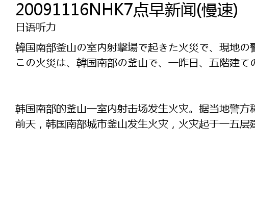| 韩国南部的釜山一室内射击场发生火灾。据当地警方称,遇难的10人中,其中8人可能是迄今依然没有取得联系的日本游客。昨日,日本游客的家属已抵达釜山,在家属的协助下,目前正在进行DNA鉴定,确认身份。 前天,韩国南部城市釜山发生火灾,火灾起于一五层建筑的第二层的室内射击场,射击场全部被烧毁,造成10死亡,6人烧伤。火灾发生时,包括从长崎县云仙市来观光的日本游客在内,共有11人在场,其中三人受伤,现正在接受治疗。剩… |