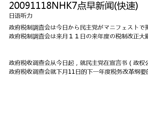 | 政府税收调查会从今日起,就民主党在宣言书(政权公约)上承诺的废除燃油暂定税率等事宜进行大规模的减税审议。但由于经济危机,在税收预计大幅减少的情况下,减税能够实现到什么地步,成为本次审议的焦点。 政府税收调查会就下月11日的下一年度税务改革纲要的决定进行正式审议。今天的主题是民主党在宣言书上承诺的减税。审议中,预计中小企业的法人税率下降能使国税减少约1800亿日元。而且,会议也对燃油税等暂定税率的废除进行了… |
