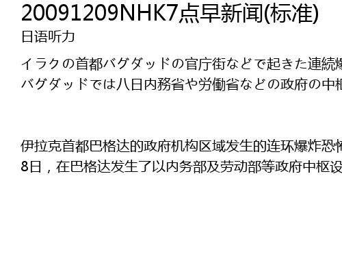 | 伊拉克首都巴格达的政府机构区域发生的连环爆炸恐怖袭击事件到目前为止死亡人数已到达127人,受伤人数已超过400人。伊拉克国内再次担忧治安恶化会影响到明年3月的议会选举。 8日,在巴格达发生了以内务部及劳动部等政府中枢设施为目标的连环爆炸袭击事件,目前已有127人死亡,受伤人数已超过400人。治安当局表示,发生爆炸的5个场所中至少有3个场所是有人引爆安置在车内的炸弹,制造自杀式的恐怖袭击。对此事件,马利基首相发表了紧… |