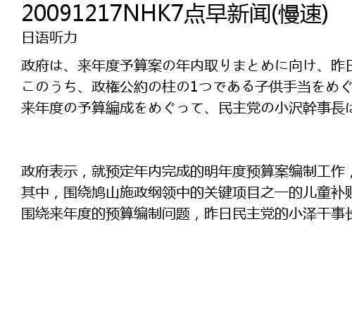 | Song | 20091217NHK7点早新闻(慢速) |