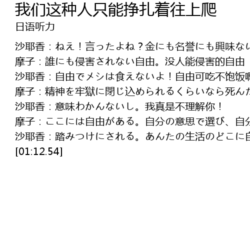 | [00:34.63] | 沙耶香:自由でメシは食えないよ!自由可吃不饱饭啊! |