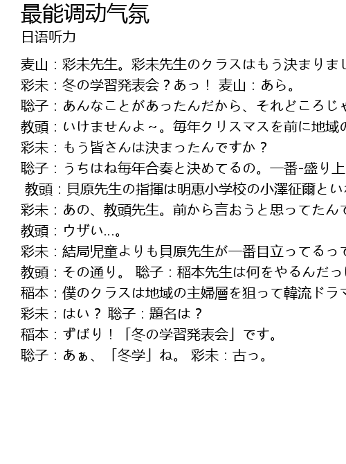 | mài shān: cǎi wèi xiān shēng. cǎi wèi xiān shēng jué? dōng xué xí fā biǎo huì. cǎi wèi: dōng xué xí fā biǎo huì?! mài shān:. cōng zi:. jiào tóu:. měi nián qián dì yù zhù mín zhāo xué xí fā biǎo huì míng huì xiǎo xué xiào chuán tǒng! cǎi wèi: jiē jué? cōng zi: měi nián hé zòu jué. yī fān shèng shàng liàn xí shì fāng míng què. jiào tóu: bèi yuán xiān shēng zhǐ huī míng huì xiǎo xué xiào xiǎo zé zhēng ěr! cǎi wèi: jiào tóu xiān shēng. qián yán sī. jiào tóu:. cǎi wèi: jié jú ér tóng bèi yuán xiān shēng yī fān mù lì. jiào tóu: tōng. cōng zi: dào běn xiān shēng hé? dào běn: pú dì yù zhǔ fù céng jū hán liú. cǎi wèi:? cōng zi: tí míng? dào běn:! dōng xué xí fā biǎo huì. cōng zi: dōng xué. cǎi wèi: gǔ. |