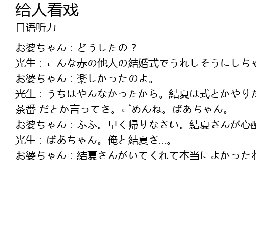 | pó:? guāng shēng: chì tā rén jié hūn shì. pó: lè. guāng shēng:. jié xià shì yán. ǎn wú tuó chá fān yán... pó:. zǎo guī. jié xià xīn pèi. guāng shēng:. ǎn jié xià. pó: jié xià běn dāng. qì. |
