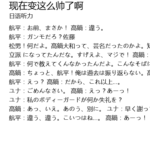 | lì pài .! gāo guō: háng píng. háng píng: hé jiào... ǎn gāo guō dà hé tóng jí shēng zì màn. gāo guō: háng píng! ǎn guò qù zhèn fǎn. gāo guō dà hé cháng qián jìn nán. ǎn guò qù bì yào. zuǒ téng sōng nán sǐ. háng píng:? gāo guō: yǐ shàng. :. gāo guō:?! : sī hé shī lǐ? gāo guō:. bié. : zǎo xiè! háng píng: wéi wéi.. gāo guō:! |