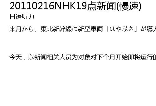 | 今天,以新闻相关人员为对象对下个月开始即将运行的东北新干线新型车辆「はやぶさ」进行了试行工作。试行会在仙台与新青森之间进行,约有170名新闻相关人员参加试乘。车辆在仙台与新青森之间运行最高时速达300千米,新闻相关人员证实高速行驶的车内很安静,感觉不到一点摇动。另外,新干线内首次导入的最高等座位「グランクラス」也对外开放。相比普通车的一排五座,グランクラス一排只有三个座位并列。为了使前后距离更广,车内限… |