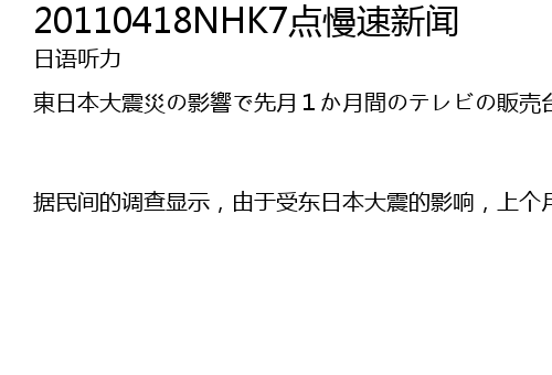 | 据民间的调查显示,由于受东日本大震的影响,上个月一月间的电视销量数与去年同期相比减少了近10%,另一方面,可以移动使用的单波段电视等应对停电的产品销量却大幅上升。据“BCN”数字家电市场的调查显示,尽管上个月一月间的电视销售数量预计因环保积分制度的结束而出现高峰,但与去年同期相比还是下降了9.2个百分点。受灾的东北地区,从上个月14日震后的一周时间起电视的销量减少了近60%,此外,在关东地区因受震后自我节制情绪… |