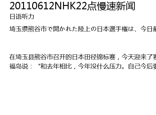 | 在埼玉县熊谷市召开的日本田径锦标赛,今天迎来了赛程的最后一天。福岛千里勇夺女子200米金牌,再加上之前获得的100米金牌,俨然登顶双料冠军。在女子100米比赛中取得压倒性胜利的福岛千里,今天迎来了200米赛跑的决赛。本场比赛中,福岛起跑时就取得了绝对的领先,最终以23秒44的成绩摘取桂冠。这也是她本人在本届锦标赛首次取得100米、200米项目双料冠军。 福岛说:“和去年相比,今年没什么压力。自己今后要加强训练,提高技术… |