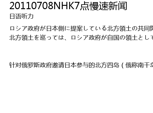 | 针对俄罗斯政府邀请日本参与的北方四岛(俄称南千岛群岛)合作开发,俄总统府高官昨天表示中国韩国等国也对该项目感兴趣,希望借此牵制日本,促成其参与合作开发。目前,俄罗斯政府正在将北方四岛视作本国领土,推进岛屿开发,同时也向日本发出合作开发的邀请,日本方面对此态度谨慎,担心合作开发会被外界认为日本接受了俄方对北方四岛的实际控制。对此,俄罗斯总统驻远东联邦区全权代表伊沙耶夫昨天到访萨哈林时对媒体称,如果日… |