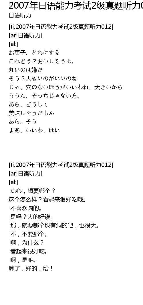 | ti: 2007 nian ri yu neng li kao shi 2 ji zhen ti ting li 012 | |