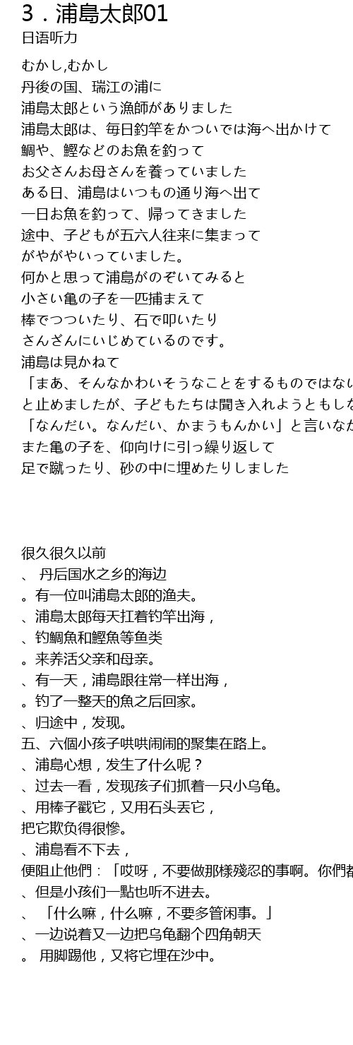 | [00:05.490] | 浦島太郎という漁師がありました |