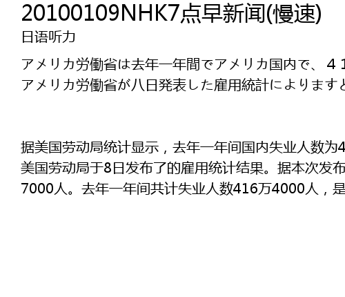 | jù měi guó láo dòng jú tǒng jì xiǎn shì, qù nián yī nián jiān guó nèi shī yè rén shù wèi 416 wàn rén, wèi tǒng jì yǐ lái de zuì chā jié guǒ. měi guó láo dòng jú yú 8 rì fā bù le de gù yòng tǒng jì jié guǒ. jù běn cì fā bù de xiū zhèng zhí xiǎn shì, cóng néng mǐn gǎn de fǎn yìng chū jīng jì dòng xiàng de fēi nóng yè láo dòng rén shù lái kàn, jǐn guǎn qù nián 11 yuè shí xiàn le shí gé yī nián shí yí gè yuè de zēng zhǎng, dàn 12 yuè què zài cì xià jiàng, yǔ qián yī yuè xiàng bǐ jiǎn shǎo le 8500 rén, yuǎn yuǎn dī yú shì chǎng yù cè shù zhí. cóng zhí yè zhǒng lèi lái kàn, jiàn shè yè hé zhì zào yè fēn bié jiǎn shǎo le 5 wàn 3000 rén hé 2 wàn 7000 rén. qù nián yī nián jiān gòng jì shī yè rén shù 416 wàn 4000 rén, shì zì tǒng jì |