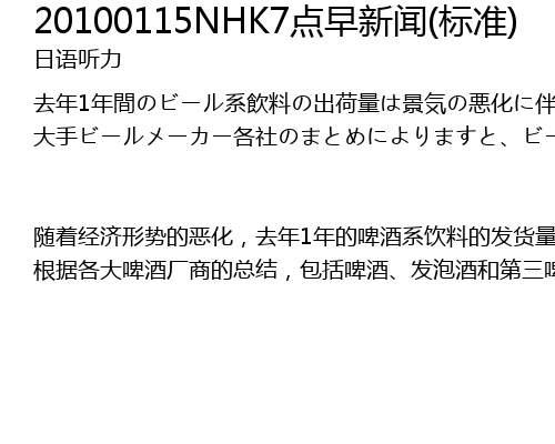 | 随着经济形势的恶化,去年1年的啤酒系饮料的发货量自统计开始以来已连续5年再创新低,而从各厂商的市场占有率来看,第三啤酒十分畅销的麒麟啤酒在时隔9年之后重回榜首。 根据各大啤酒厂商的总结,包括啤酒、发泡酒和第三啤酒,去年1年的发货量为598万千升有余,比前一年下降2.1%,是自平成4年(1992年)统计开始以来发货量最少的一年。主要原因是经济形势的恶化以及消费者观望不买的情况增多,本应有较大需求的夏天也因连续雨天和… |