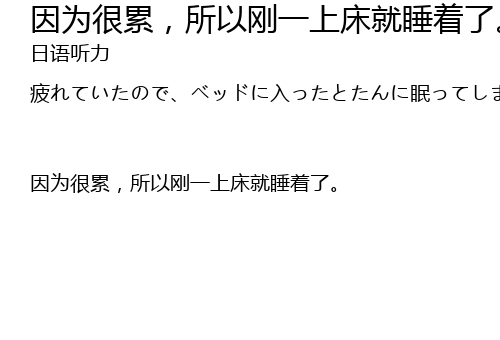 yīn wèi hěn lèi, suǒ yǐ gāng yī shàng chuáng jiù shuì zháo le.