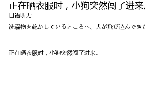 zhèng zài shài yī fú shí, xiǎo gǒu tū rán chuǎng le jìn lái.