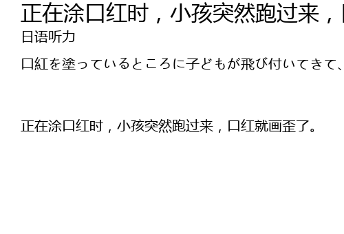 | 口紅を塗っているところに子どもが飛び付いてきて、食み出してしまった。 | |