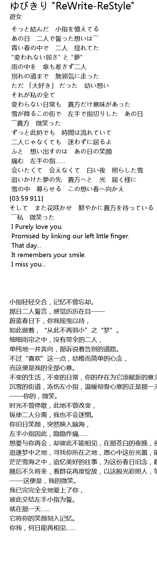 | [00:22.391] | そっと結んだ 小指を憶えてる |
