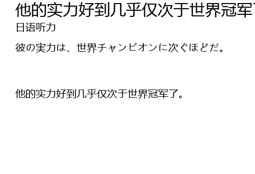 彼の実力は、世界チャンピオンに次ぐほどだ。