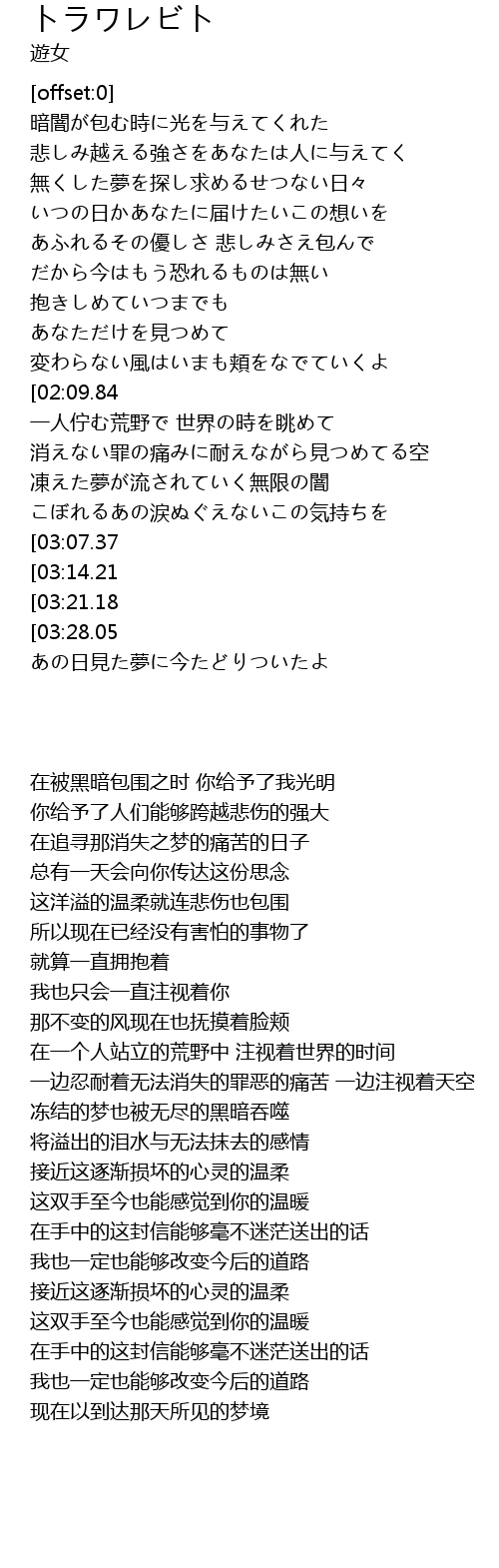 | [02:11.61][03:07.37] | 壊れていく心に近づくその優しさ |