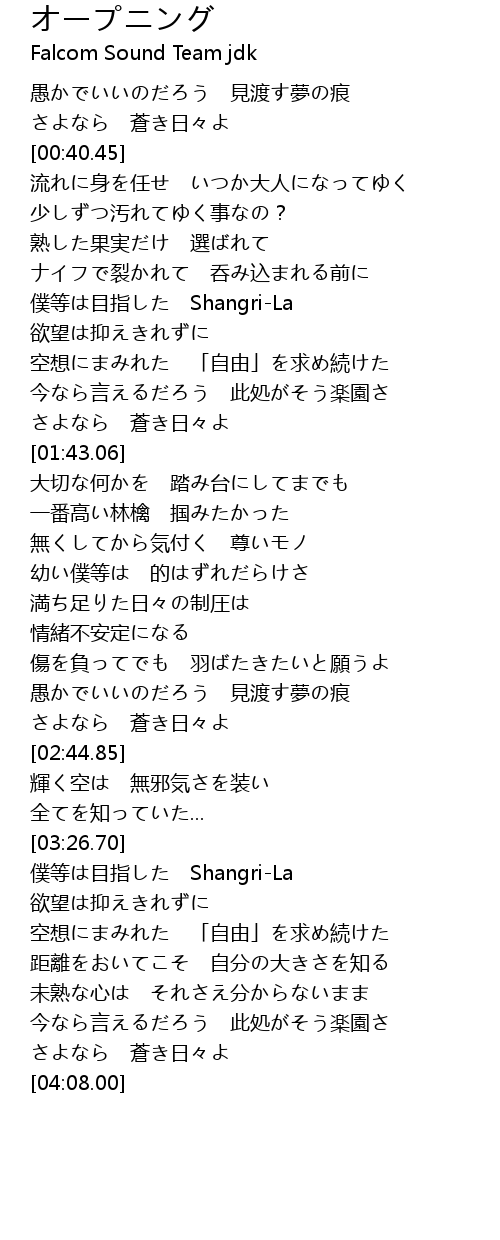 | [01:18.67] | 僕等は目指した Shangri-La |