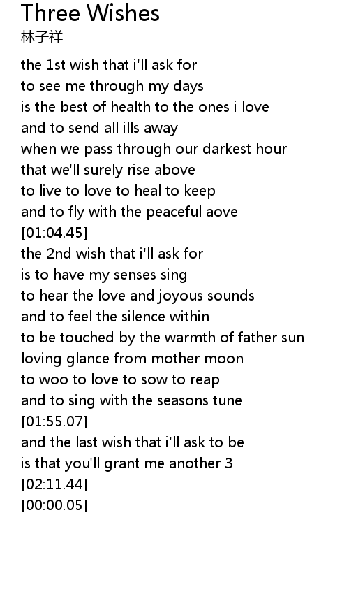 | [00:22.22] | the 1st wish that i'll ask for |