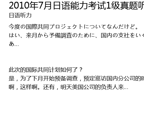 | Song | 2010年7月日语能力考试1级真题听力04 |