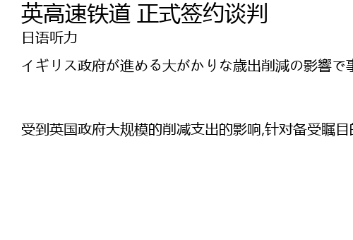 | 受到英国政府大规模的削减支出的影响,针对备受瞩目的日立制作所提交的高铁计划,英国运输部于1日公布结果,如能缩小工程规模,就可以进行正式签约的谈判.这项工程是对英国国内老化的铁路车量最多1400辆进行更新,按照最初的计划规模耗资近1兆日圆.前年日立制作所得到了对高铁用车量的制造订单优先谈判权.对此英国运输部于1日表示,”日立方面提出了将电和柴油机组合,比较节约成本的方案”,将于今年内进行最后签约的谈判.但更新车量的树量缩减至500辆,总工程费用缩减至6000亿日圆. |