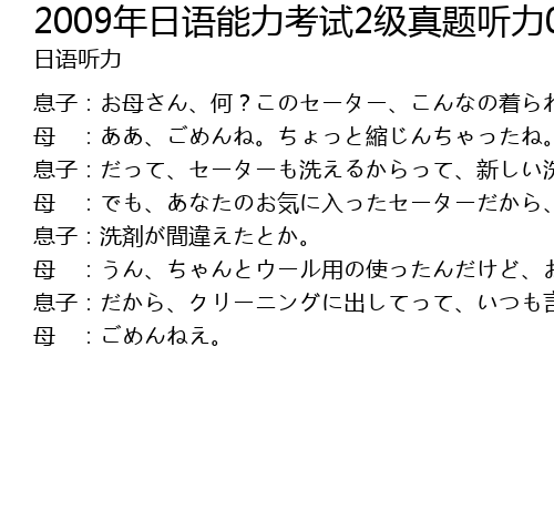 | [00:00.00] | 息子:お母さん、何?このセーター、こんなの着られないよ。 |