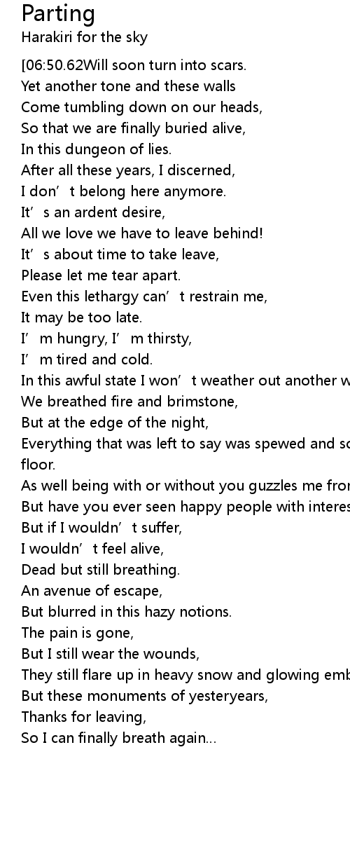 | [04:20.05] | Everything that was left to say was spewed and scattered over the floor. |