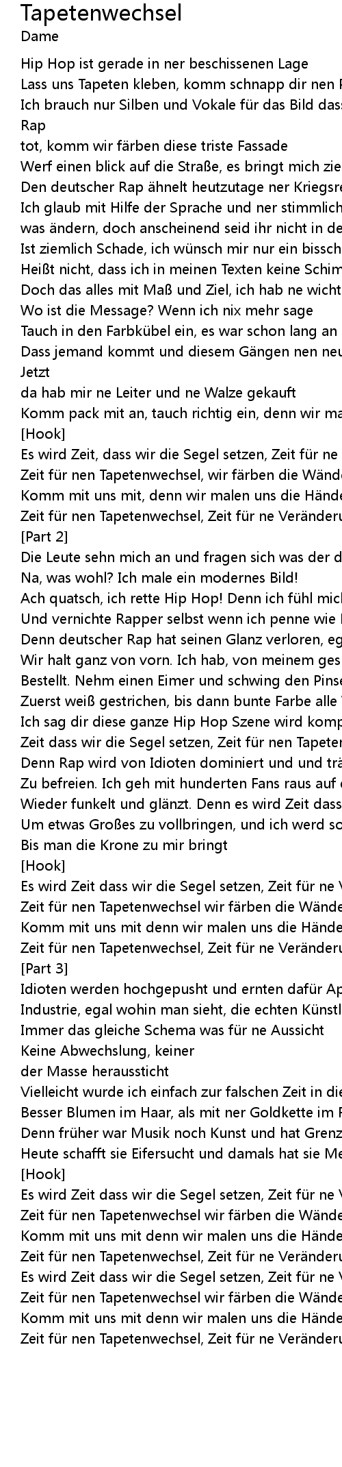 | Zeit für nen Tapetenwechsel, Zeit für ne Veränderung |