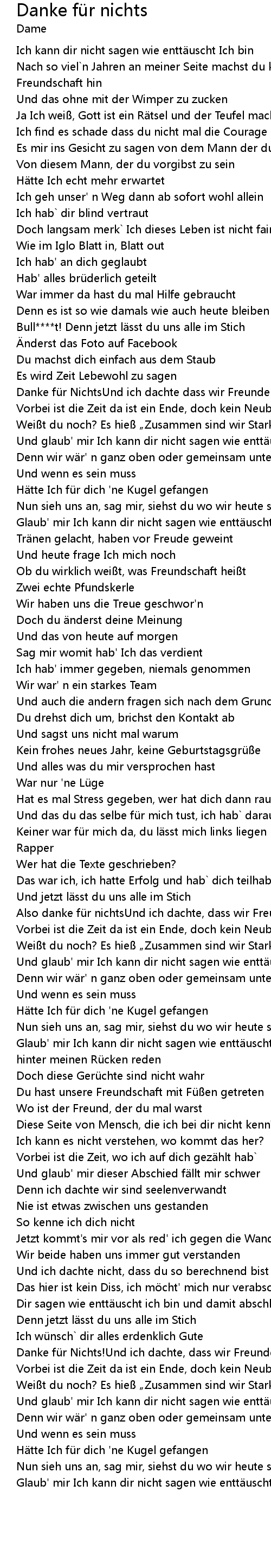 | Danke fü r NichtsUnd ich dachte dass wir Freunde sind | |