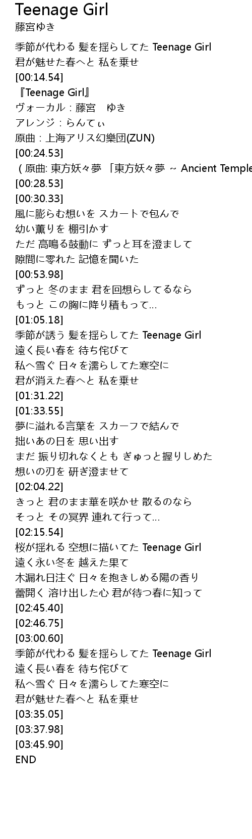 | [00:16.09] | 『Teenage Girl』 |