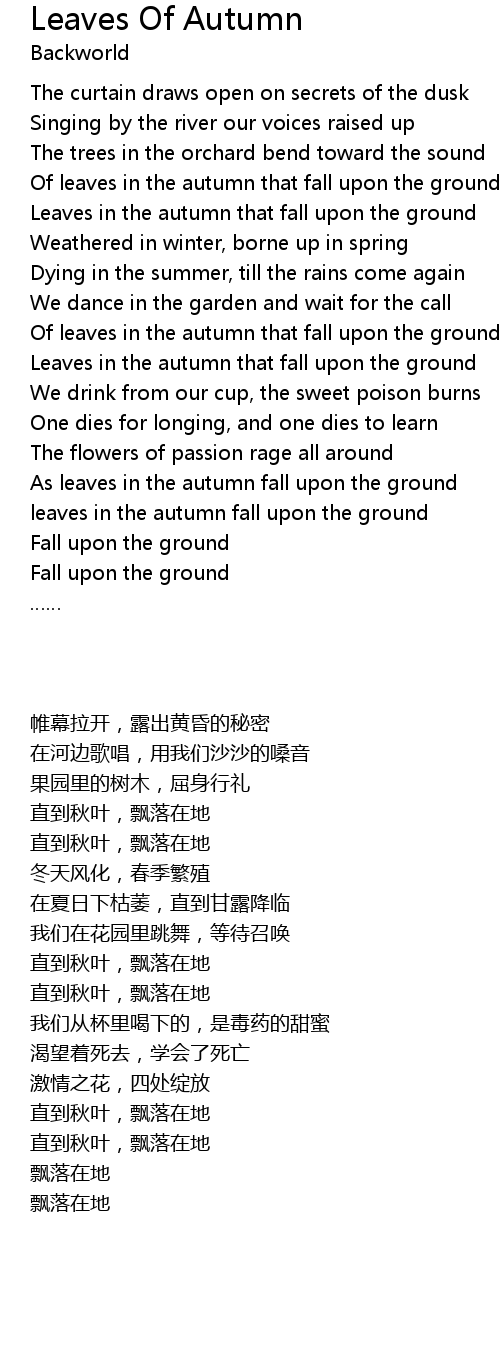 | [02:49.11] | As leaves in the autumn fall upon the ground |