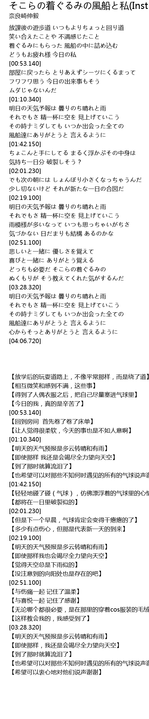 | [03:51.800] | 風船達にありがとうと 言えるように |