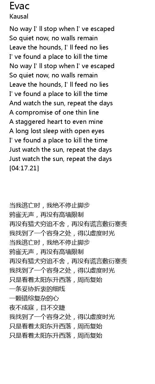 Evac Lyrics