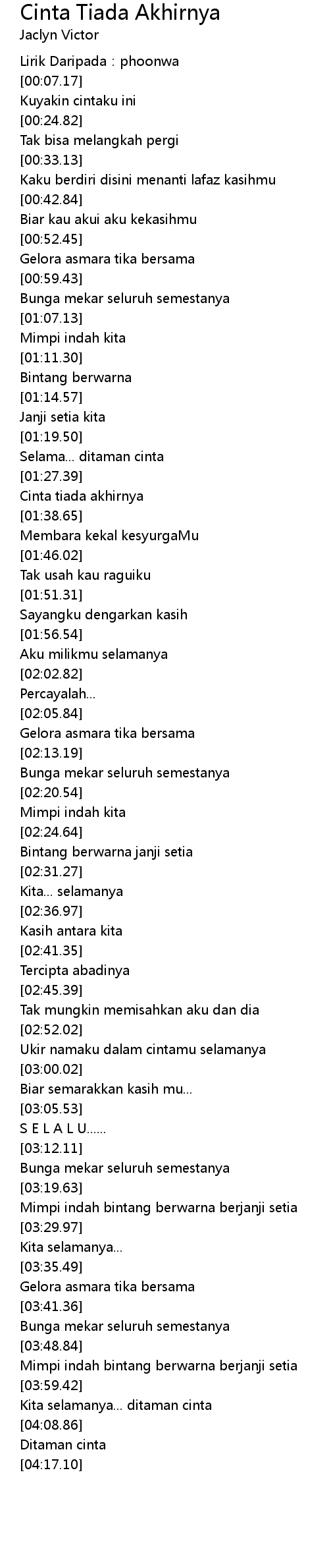 | [01:32.86] | Cinta tiada akhirnya |